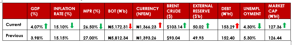 Friday saw a decline with Liquidity shrinking to ₦6.62trillion. Consequently, Open Repo Rate (OPR) remained unchanged at 22.00% while the Overnight Rate increased by 12bps at 22.33%.