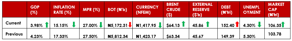 On a sectoral basis, all sectors closed positive, with the Banking, Consumer Goods, Industrial Goods, Insurance and Oil and Gas indices increasing by 3.45%, 1.59%, 0.67%, 1.78% and 5.71% compared to previous week.