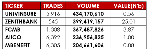 - A total turnover of 4.77 billion shares worth ₦107.43billion in 152,965 deals was traded this week by Investors on the floor of the Exchange, in contrast to a total of 8.56billion shares valued at ₦99.94billion that exchanged hands last week in 177,870 deals.