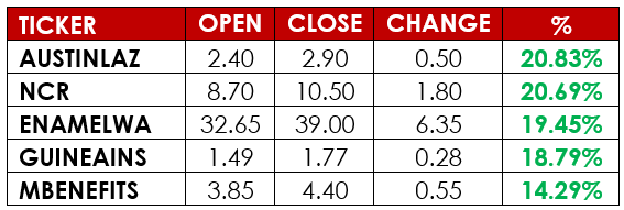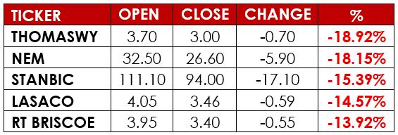 - On a sectoral basis, Industrial Goods, Banking, Insurance and Oil and Gas indices closed negative at 8.42%, -3.48%, -4.17%, and -0.84%, while the Consumer Goods Index was the sole gainer, closing positive at 0.83%.