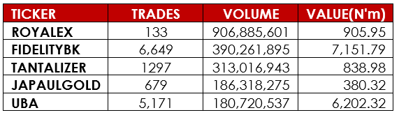 A total turnover of 3.93 billion shares worth ₦74.81billion in 105,220 deals was traded this week by Investors on the floor of the Exchange, in contrast to a total of 2.61 billion shares valued at ₦63.79billion that exchanged hands last week in 77,593 deals. On a sectoral basis, the Banking, Oil and Gas indices closed negative at -1.52% and -3.44%, while Insurance, Consumer Goods and Industrial Goods indices all closed positive at 0.73%, 2.18% and 0.72%, respectively.