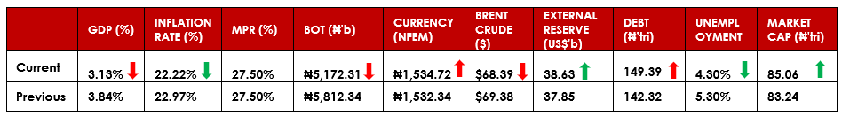 System liquidity closed positive this week at ₦1.35trillion due to inflows from FAAC allocations and net NTB maturities. Consequently, the Short-term rates closed lower, as the Open Repo Rate (ORR) and the Overnight Rate (O/N) decreased by 583bps and 575bps to 26.50% and 26.92% respectively.