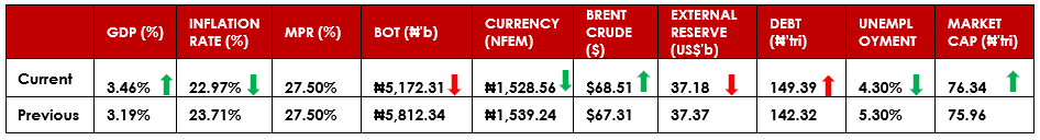 System Liquidity opened the week strong note but tightened midweek following a ₦600billion OMO auction and corporate tax remittance closing the week positive at ₦811.56billion. Short-term rates closed higher, as the Open Repo Rate (ORR) and the Overnight Rate (O/N) increased by 33bps and 42bps to 26.83% and 27.42% respectively.