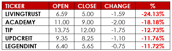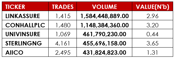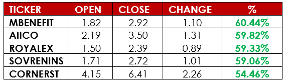 Notable gainers this week were Mutual Benefits Assurance PLC and AIICO Insurance PLC, while Notable losers were Academy Press PLC and Livingtrust Mortgage PLC.